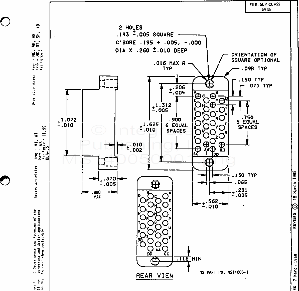 MS14005 Insert (Insulator), Rectangular Connector, Electrical, 26 (Size 16 And 20 Crimp Removable) Socket Contacts (S/S By Mil-Dtl-28748/4)