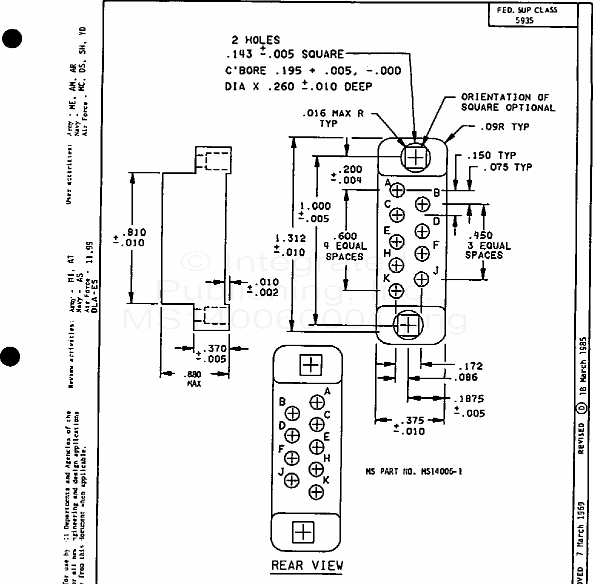 MS14006 Insert (Insulator), Rectangular Connector, Electrical, 9 (Size 16, 20 Crimp Removable) Socket Contacts (S/S By Mil-Dtl-28748/4)