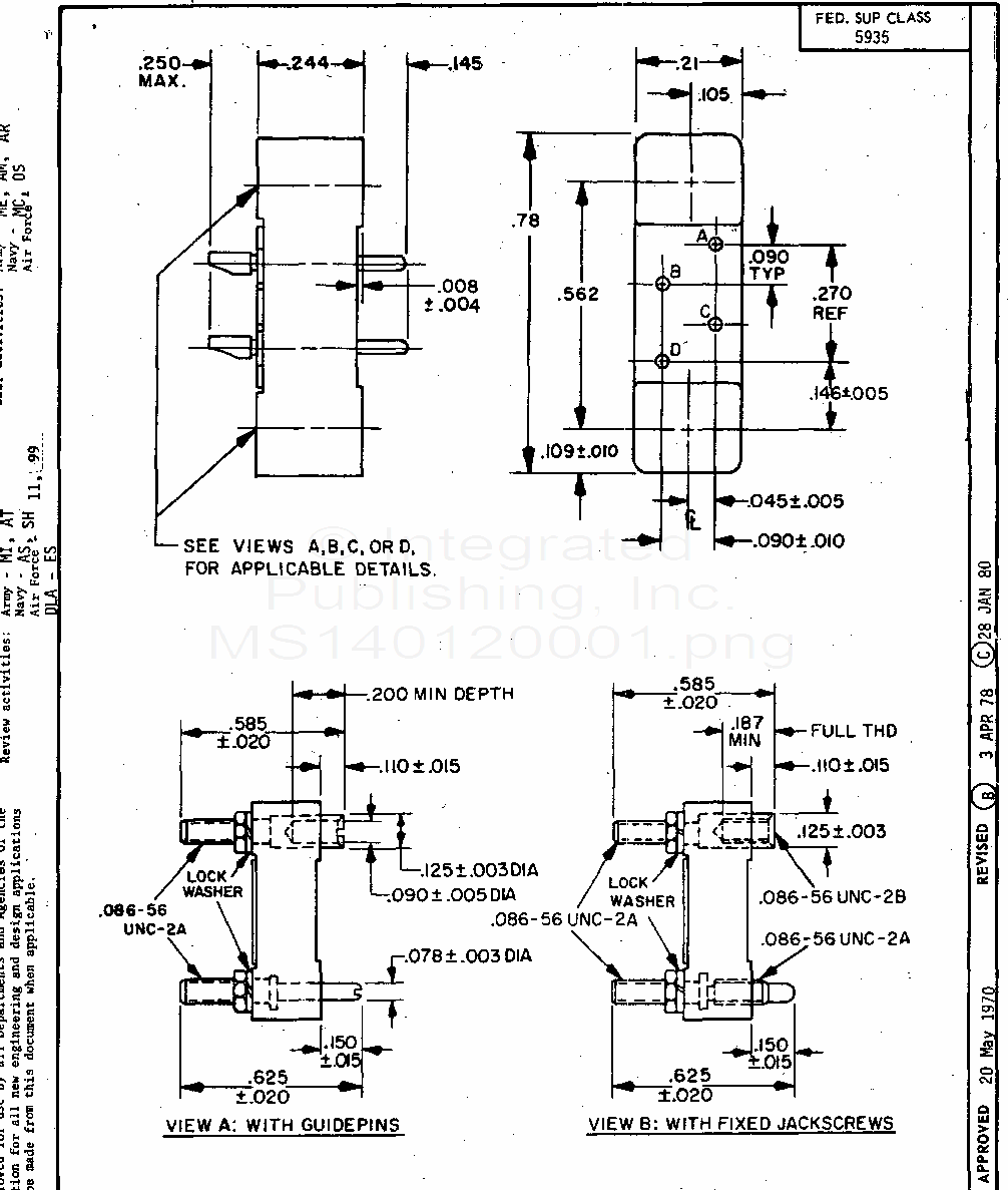 MS14012 Connector, Rectangular, Electrical Rack And Panel 4 Size 22 Solder Pin Contacts (S/S By Mil-C-28748/7)