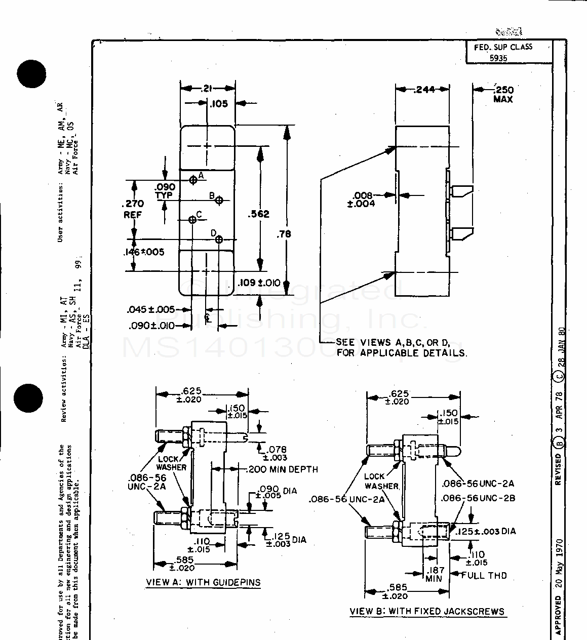 MS14013 Connector, Rectangular, Electrical Rack And Panel 4 Size 22 Solder Socket Contacts (S/S By Mil-C-28748/8)
