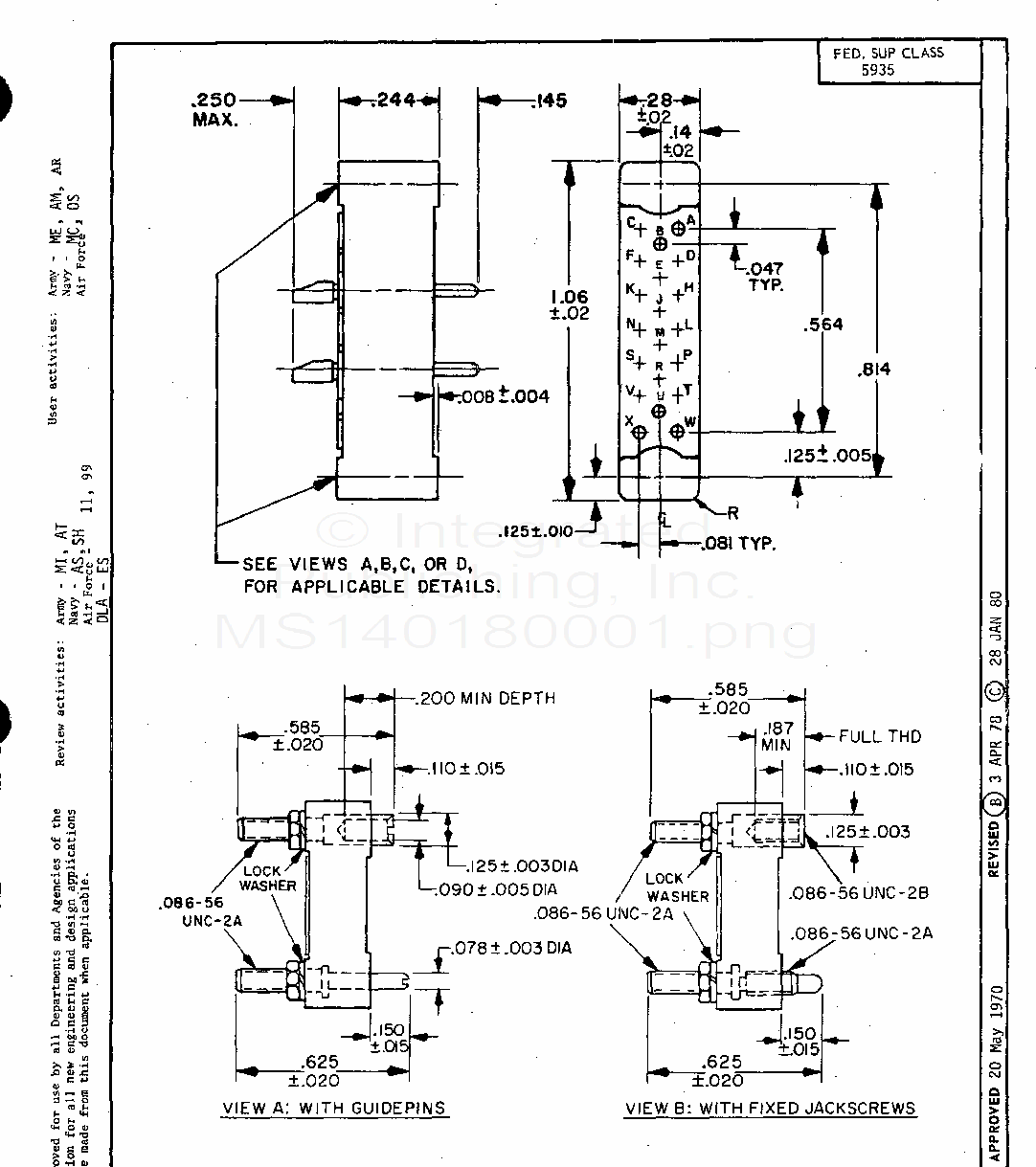 MS14018 Connector, Rectangular, Electrical Rack And Panel 20 Size 22 Solder Pin Contacts (S/S By Mil-C-28748/7)