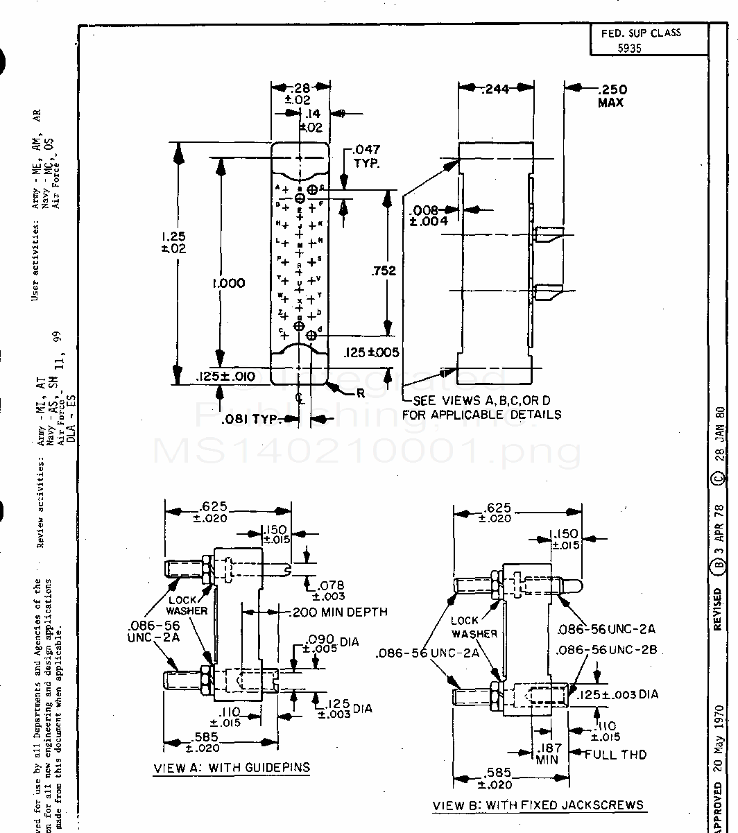 MS14021 Connector, Rectangular, Electrical Rack And Panel 26 Size 22 Solder Socket Contacts (S/S By Mil-C-28748/8)
