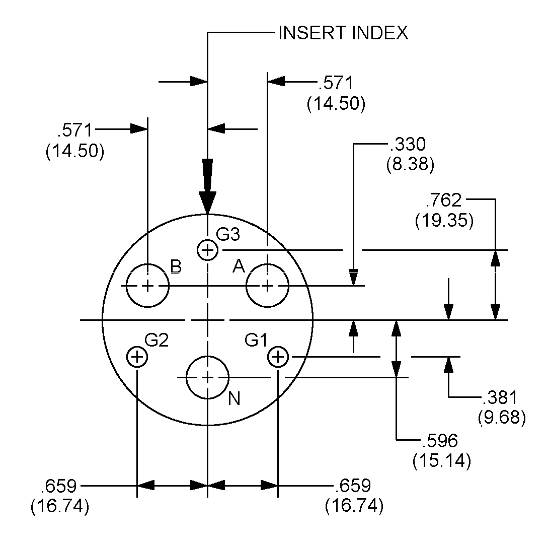 6. The contact position labeled (G) in the insert arrangement contains the 1/0N (neutral) size pin contact that is connected to the shell to form a grounding pin contact.