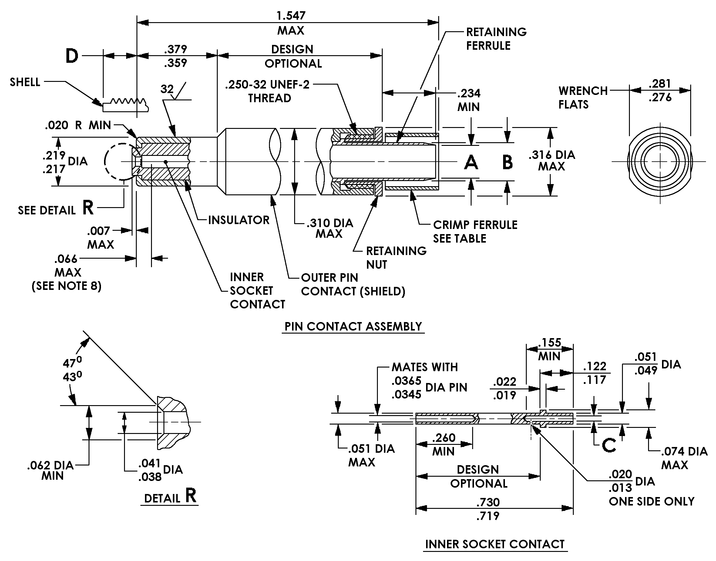 CONTACTS, ELECTRICAL CONNECTOR, SHIELDED CABLE APPLICATIONS, SIZE 8