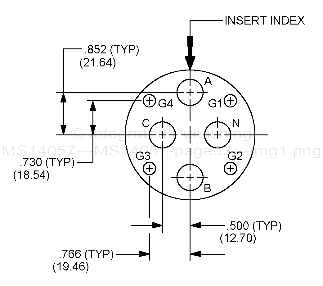 2. Unless otherwise specified, front face of pin insert pattern is shown. Socket inserts are the reverse.