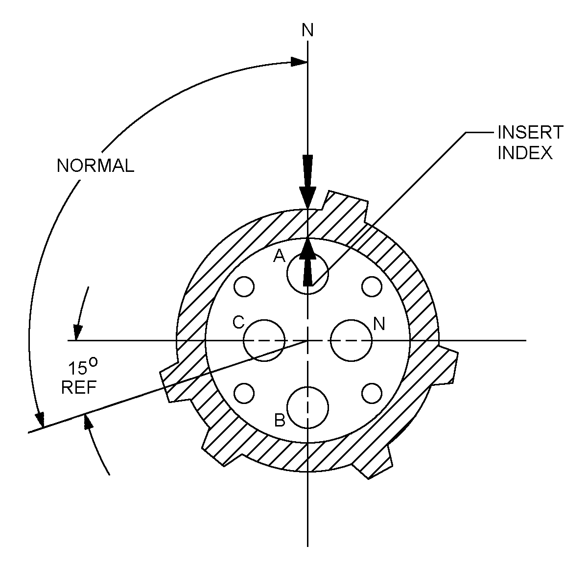 2. Front face of pin insert shown.