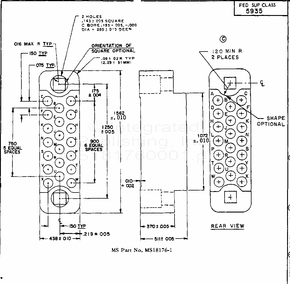 MS18176 Insert (Insulator), Rectangular Connector, Electrical, 20 (Size 16, 20 Crimp Removable) Pin Contacts (S/S By Mil-Dtl-28748/3)