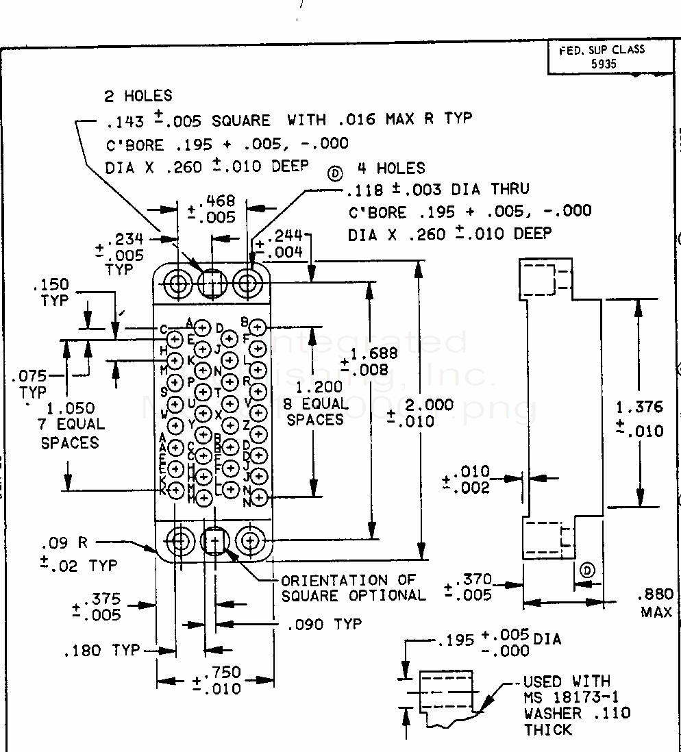 MS18179 Insert (Insulator), Rectangular Connector, Electrical, 34 (Size 16 And 20 Crimp Removable) Socket Contacts (S/S By Mil-Dtl-28748/4)