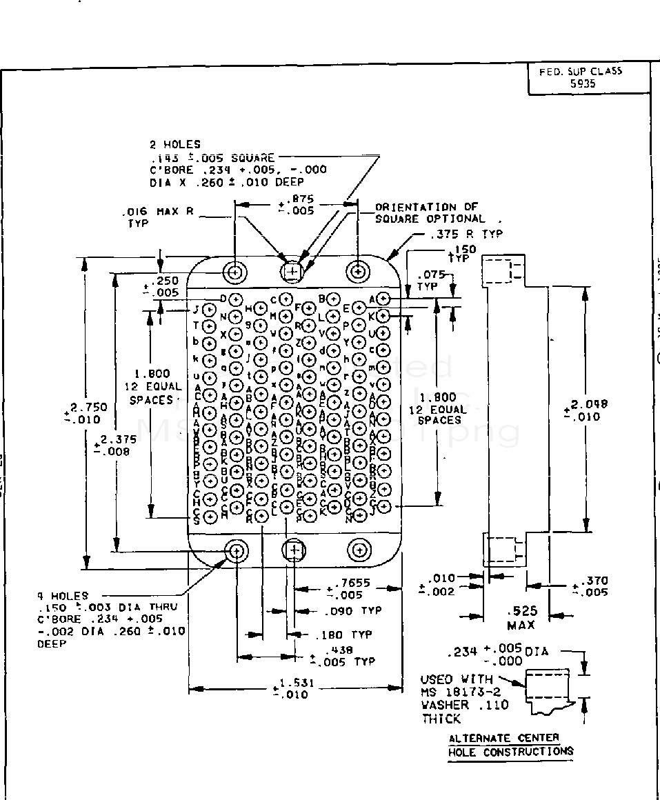 MS18189 Insert (Insulator), Rectangular Connector, Electrical, 104 (Size 16 And 20 Crimp Removable) Pin Contacts (S/S By Mil-Dtl-28748/3)