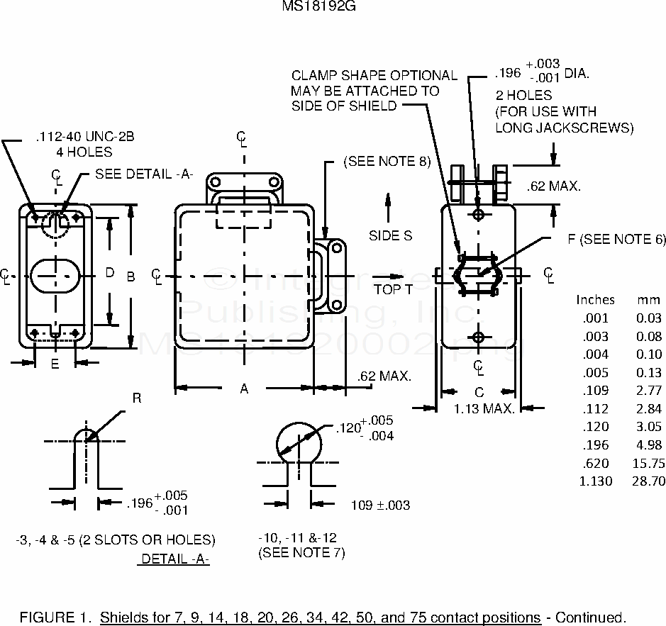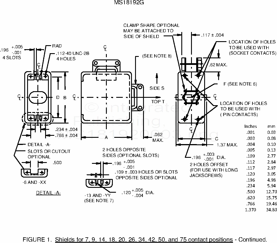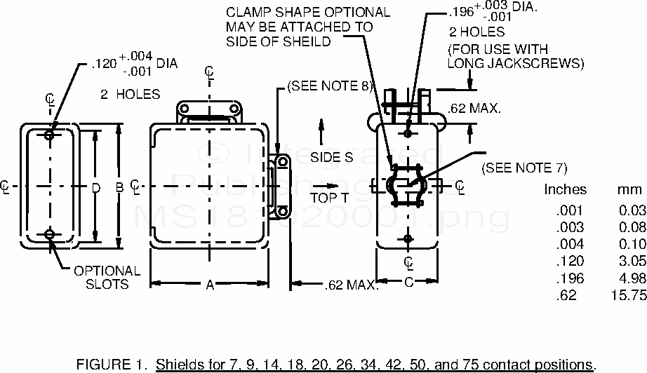 MS18192 Shield, Electrical Connectors For 7, 9, 14, 20, 26, 34, 42, 50 And 75 Contact Connectors