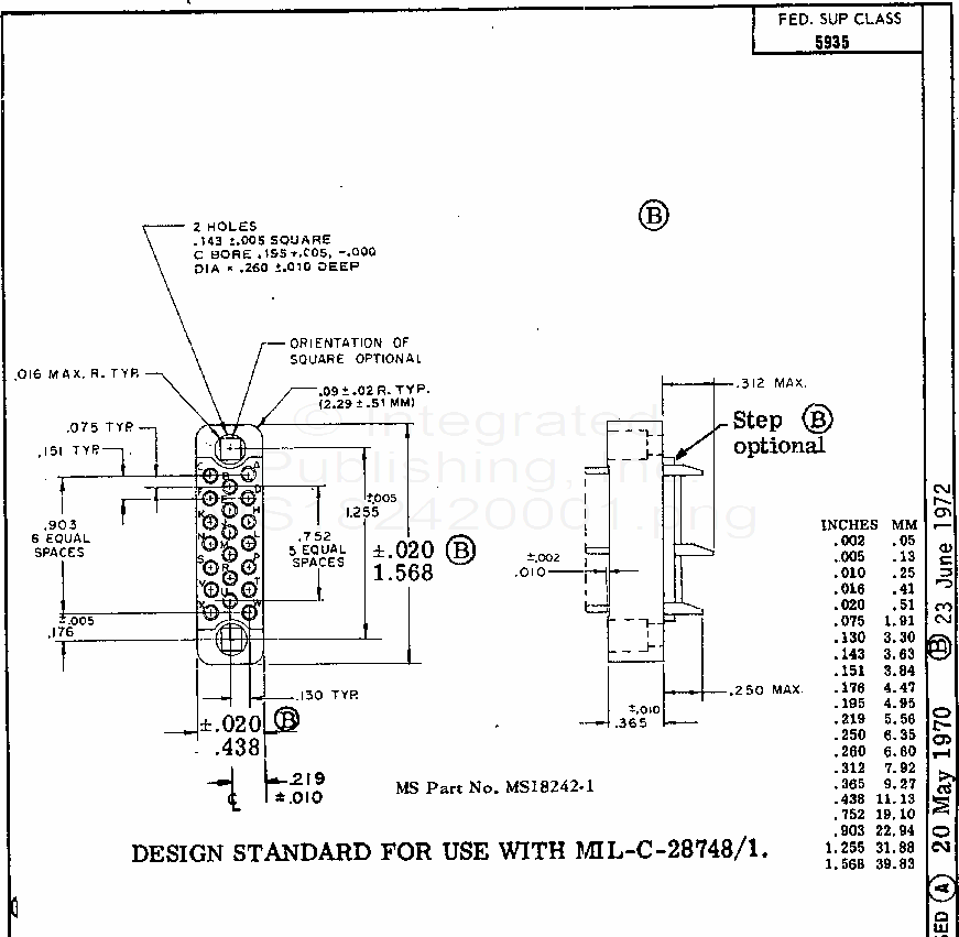 MS18242 Connector Rectangular, Electrical Rack And Panel 20 Size 16 Solder Pin Contacts (S/S By Mil-Dtl-28748/1)