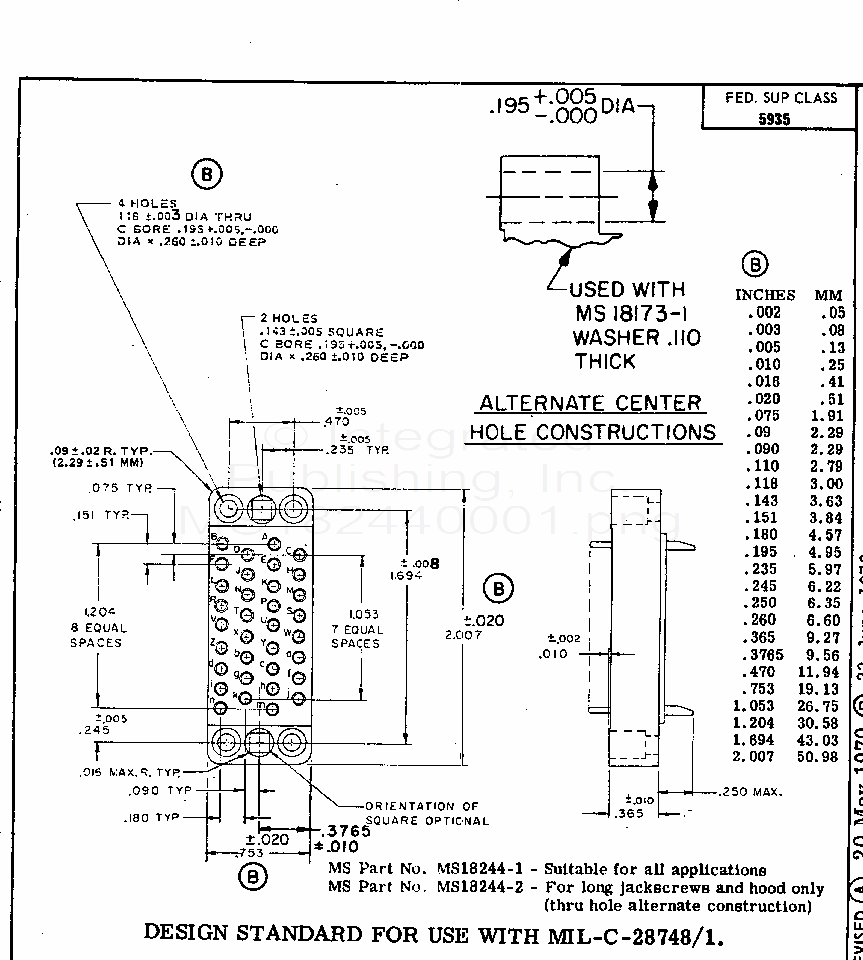 MS18244 Connector Rectangular, Electrical Rack And Panel 34 Size 16 Solder Pin Contacts (S/S By Mil-Dtl-28748/1)
