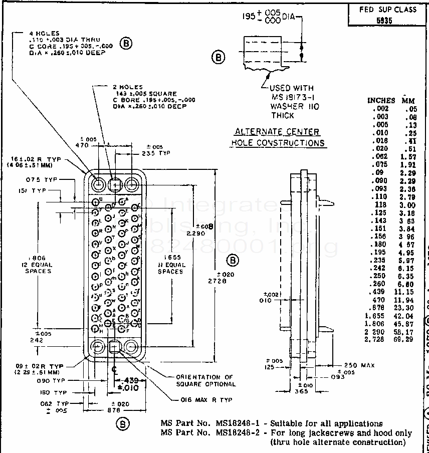 MS18248 Connector Rectangular, Electrical Rack And Panel 50 Size 16 Solder Pin Contacts (S/S By Mil-Dtl-28748/1)