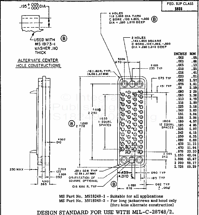 MS18249 Connector Rectangular, Electrical Rack And Panel 50 Size 16 Solder Socket Contacts (S/S By Mil-Dtl-28748/2)