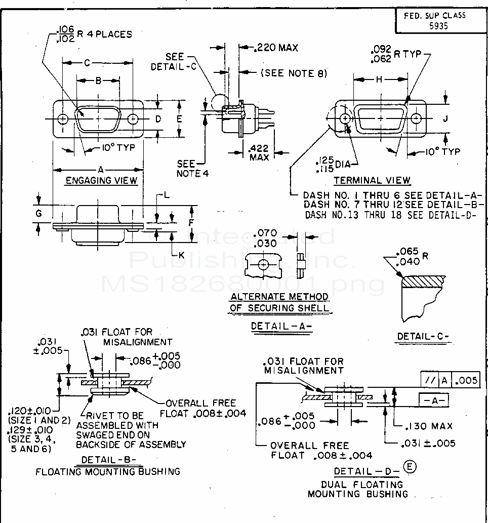 MS18268 Connectors, Electric, Rectangular, Miniature, Polarized Shell, Rack And Panel, Shell, Plug, Pin Contacts, Solder Type (S/S By Mil-Dtl-24308/3 Or Mil-Dtl-24308/7)