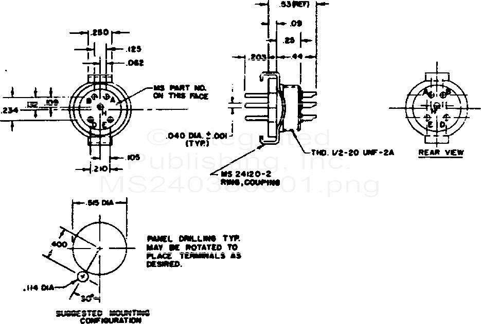 MS24038 Connector, Plug-Receptacle, Electrical, Hexagonal, 5 Contacts, Male, 7.5 Amps (S/S By Mil-Dtl-28748/16)