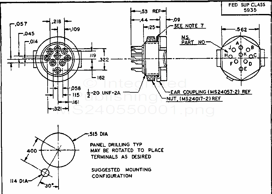 MS24055 Connector, Plug-Receptacle, Electrical, Hexagonal, 9 Contacts, Female, 7.5 Amps (S/S By Mil-Dtl-28748/15)