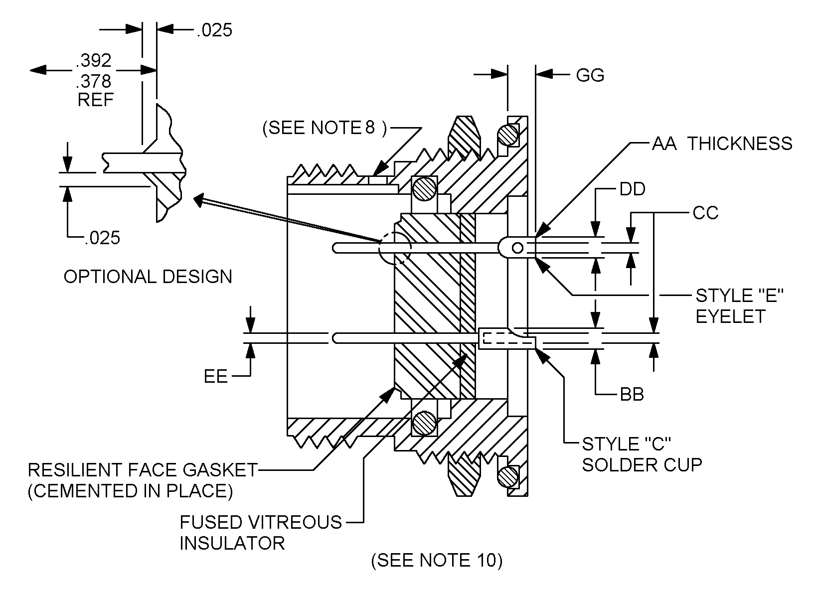 FIGURE 3. Receptacle, threaded, shell design for class H, (hermetic) type T.