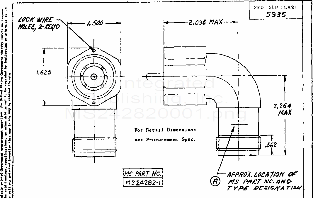 MS24282 Connector, Plug, Electrical - 90 Deg. Adapter, Lt Series Ug-1264/U
