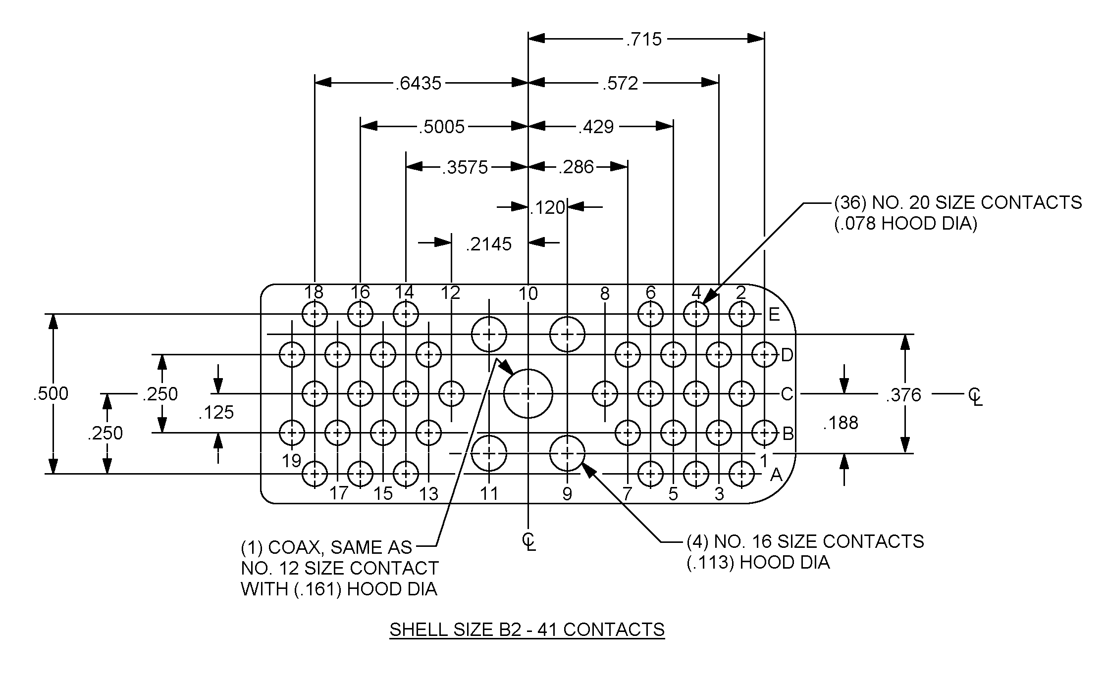 1 size coax contact, 4 size 16 contacts, and 36 size 20 contacts