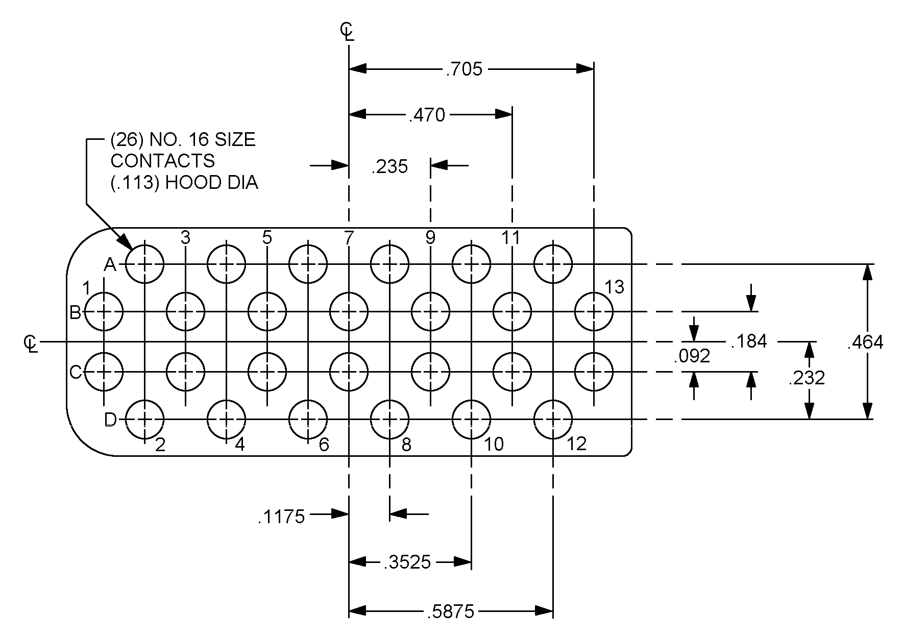 5. Contact identification shall be marked on rear surfaces. Characters shown are for rear face of pin insert.
