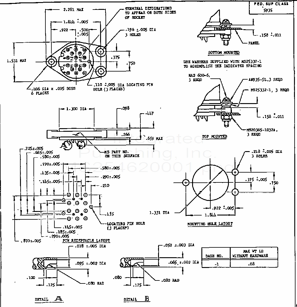 MS25462 Socket, Relay, Electrical, 16 Contacts, 10 Amp