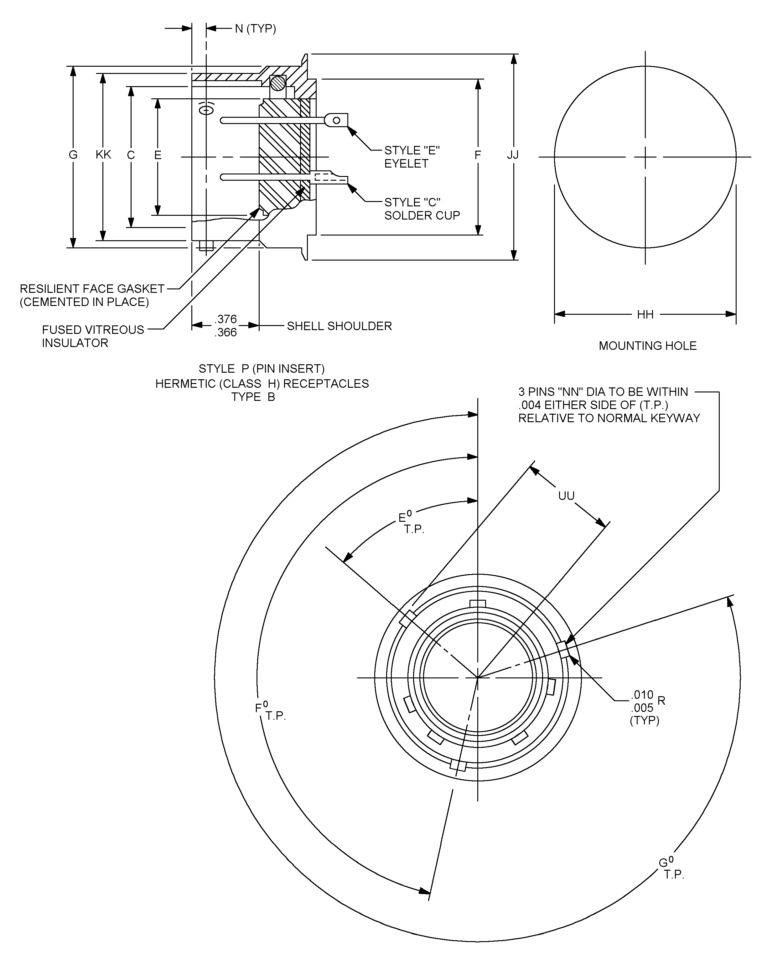 FIGURE 1. Receptacle, class H (hermetic) dimensions - Continued.