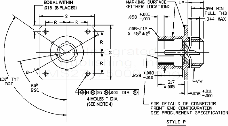 MS27475 Connectors, Receptacle, Electrical, Wall Mounting Flange, Solder Type, Hermetic Seal, Series Ii