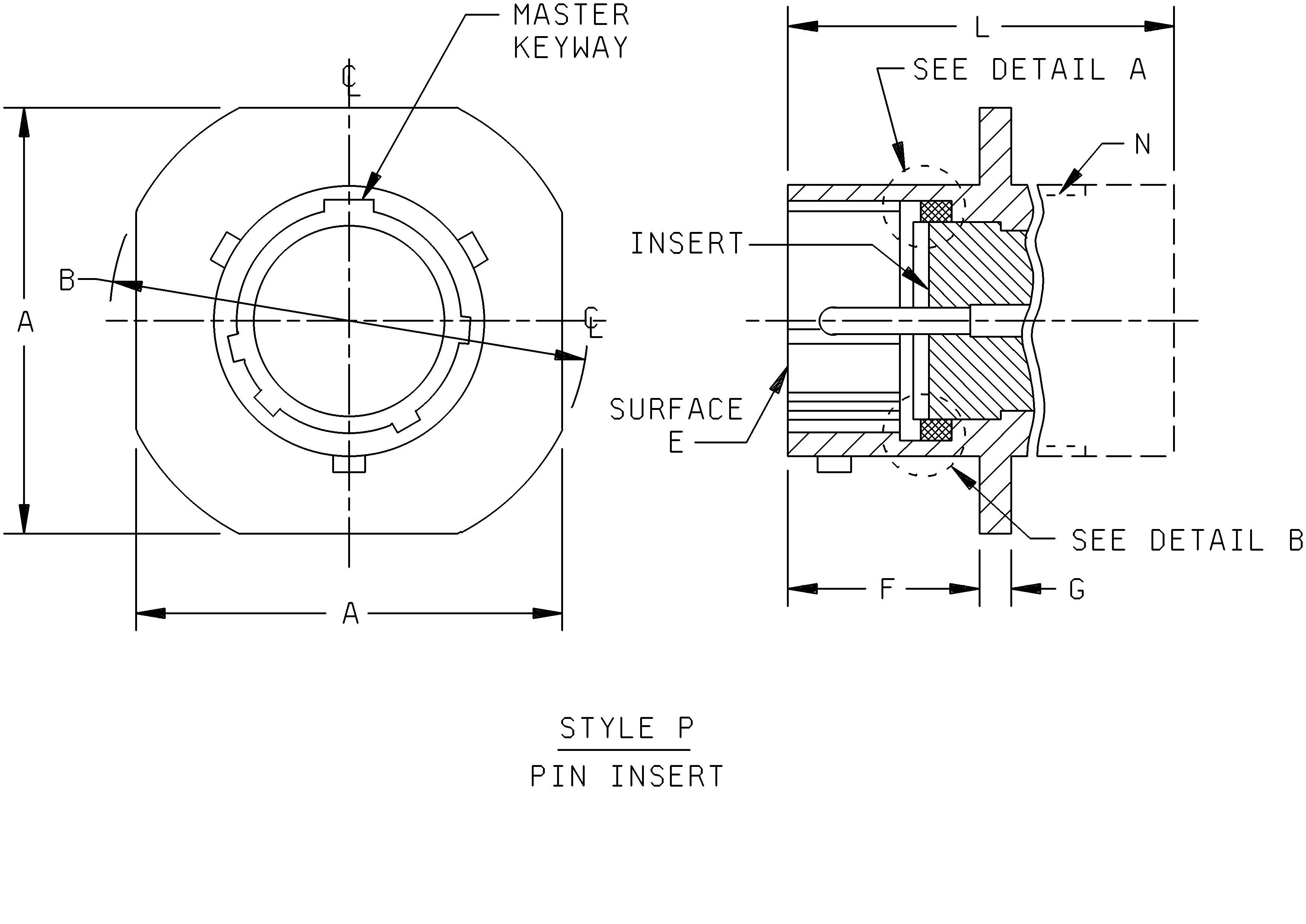 FIGURE 1. Plug, classes E, F, J, and P, pin and socket inserts.