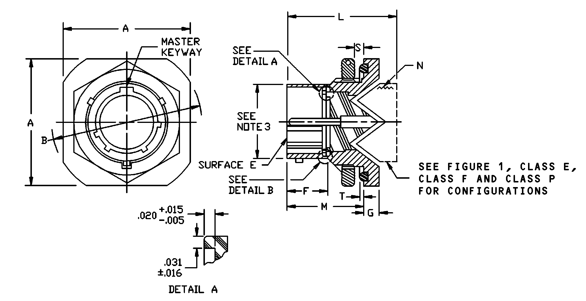FIGURE 1. Dimensions and configurations for classes E, F and P.