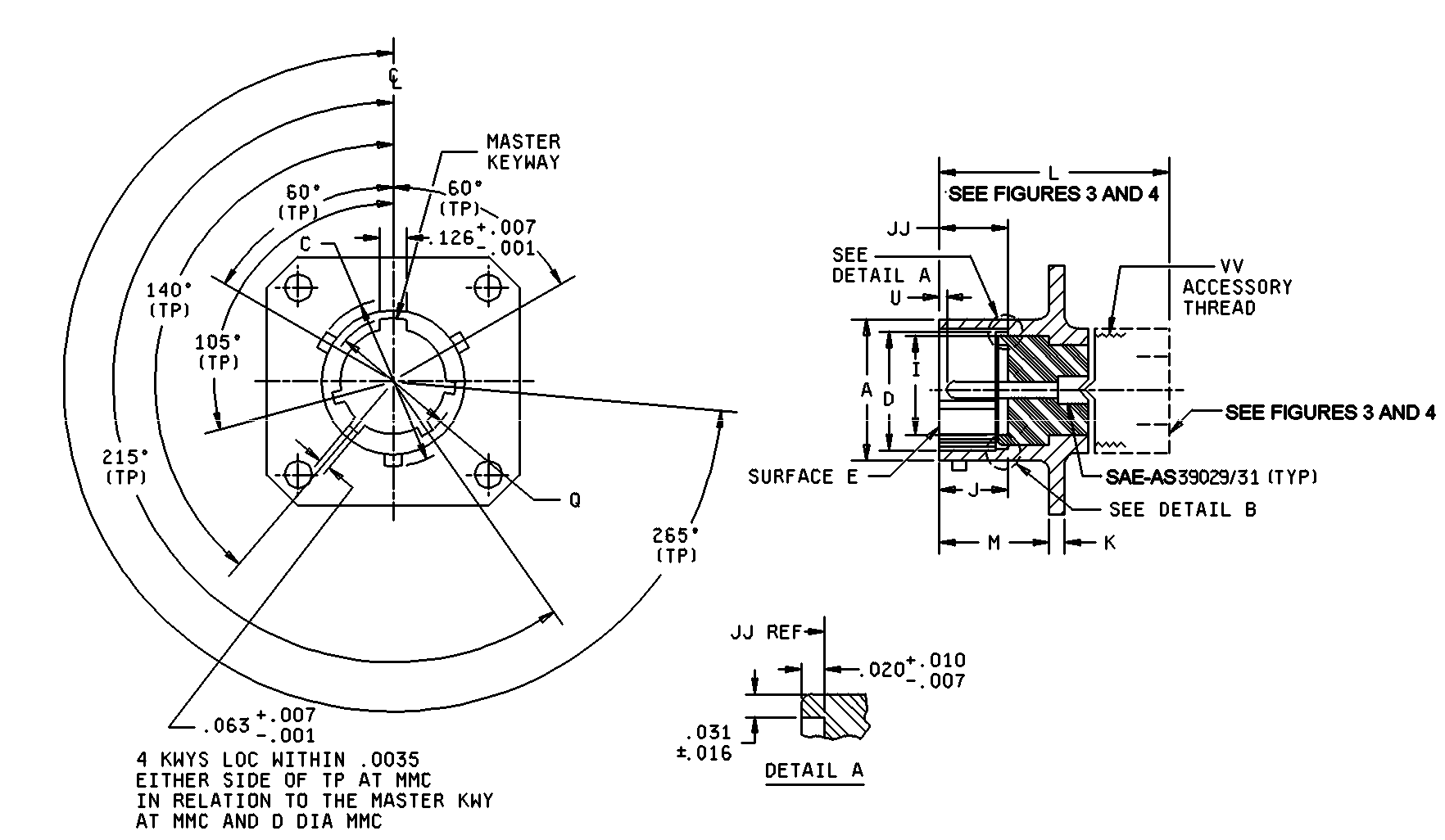 WALL MOUNTING, FLANGE, NO. 4 HOLES, BAYONET COUPLING, SERIES 1, CLASSES E, F AND P