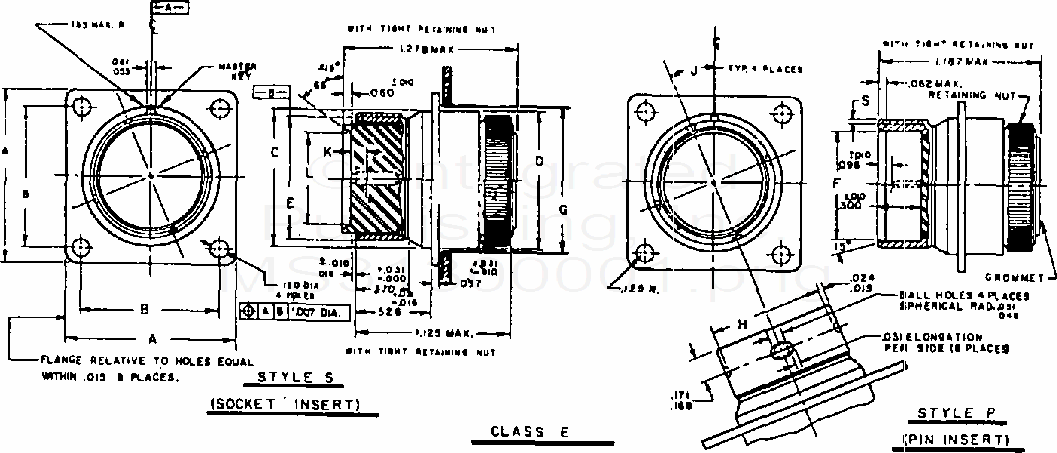 MS3130 Connectors, Receptacle, Electric, Solder Type, Wall Mounting Flange, Push Pull Coupling, Series 1 (Class E, P And J) (S/S By Sae-As31301)