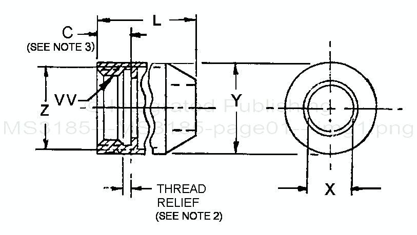 2. Thread relief must be larger than one full thread to allow potting compound to fill thread relief when boot is bottomed on mating connector accessory thread.