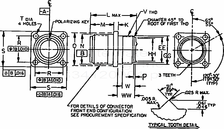 MS3412 Connectors, Receptacle, Electric, Wall Mounting, Front Release, Crimp Contact, An Type-With Accessory Threads (S/S By Sae-As34121)