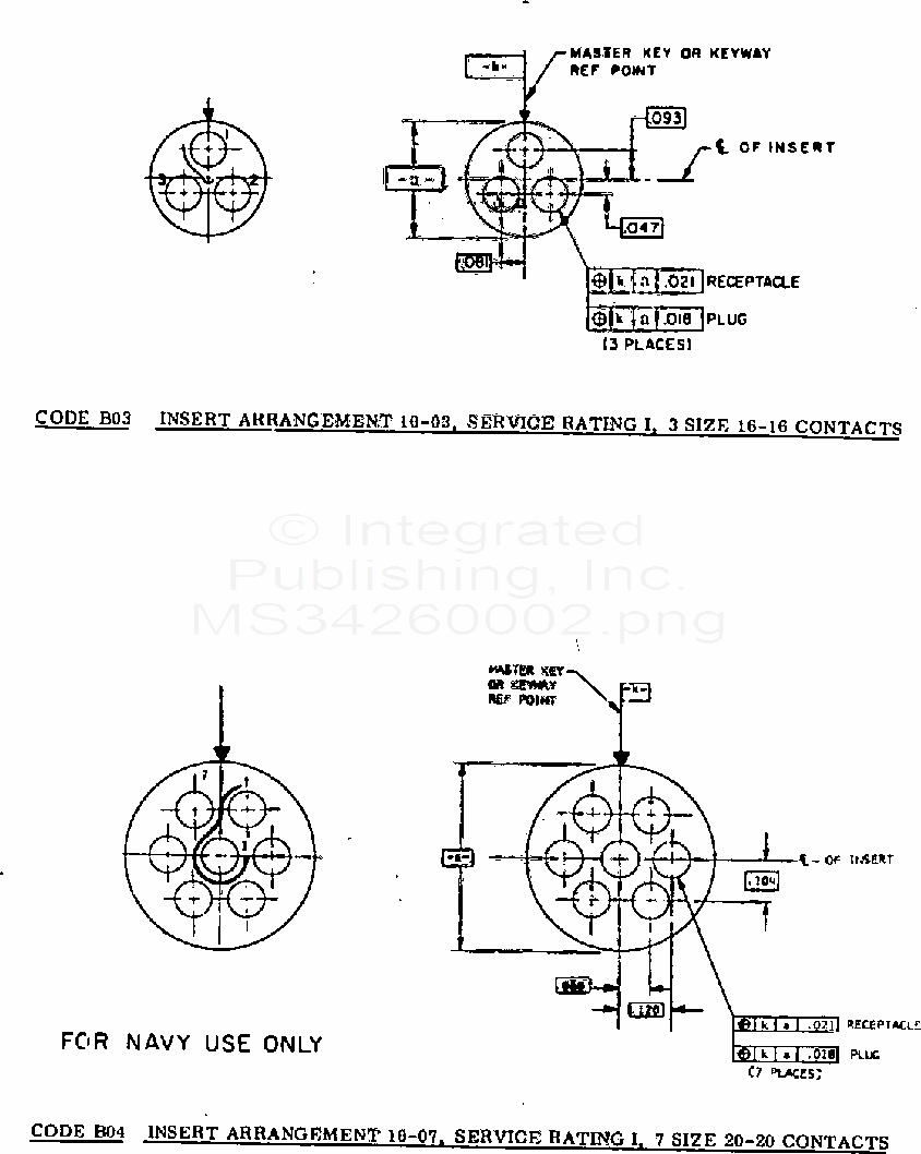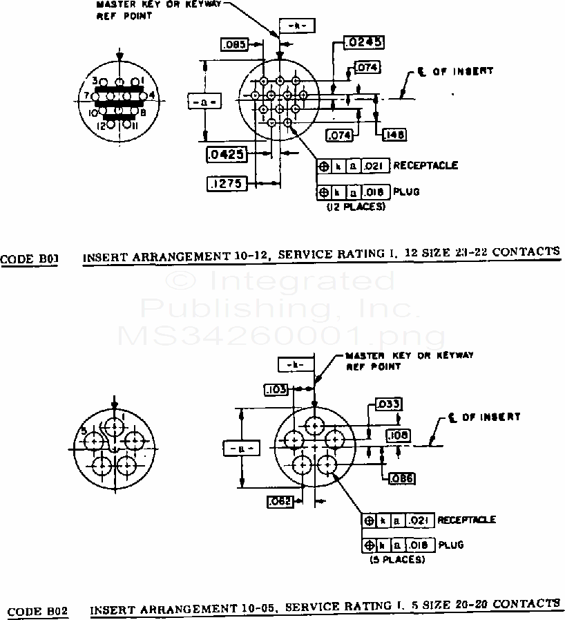 MS3426 Insert Arrangements, Mil-C-81511 Electric Connector, Size 10