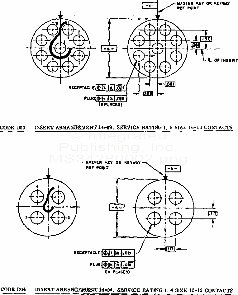 MS3428 Insert Arrangements, Mil-C-81511 Electric Connector, Size 14