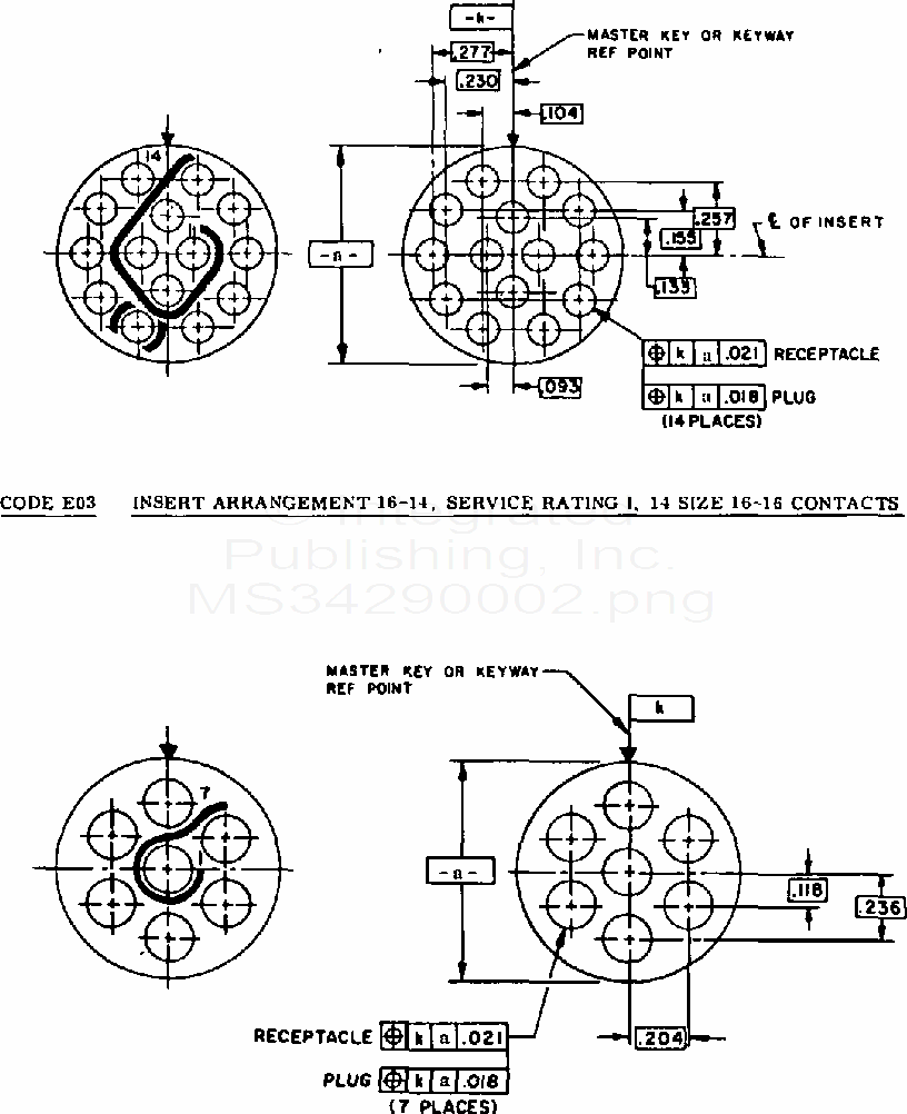 MS3429 Insert Arrangements, Mil-C-81511 Electric Connector, Size 16
