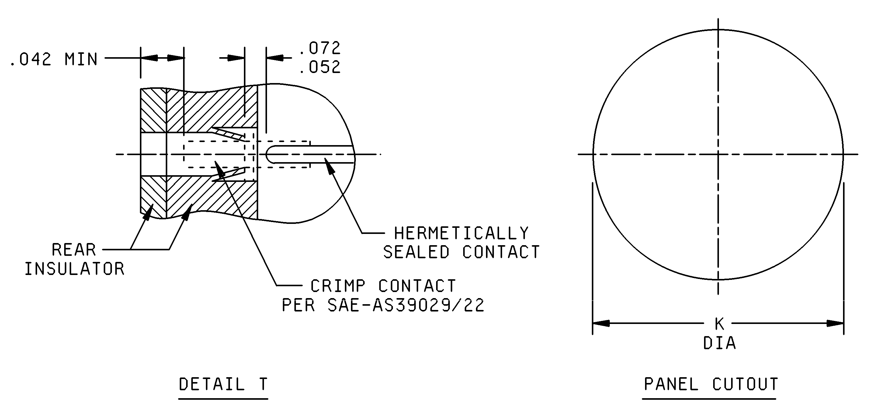 FIGURE 1. Receptacle, class N, dimensions and configurations - Continued.