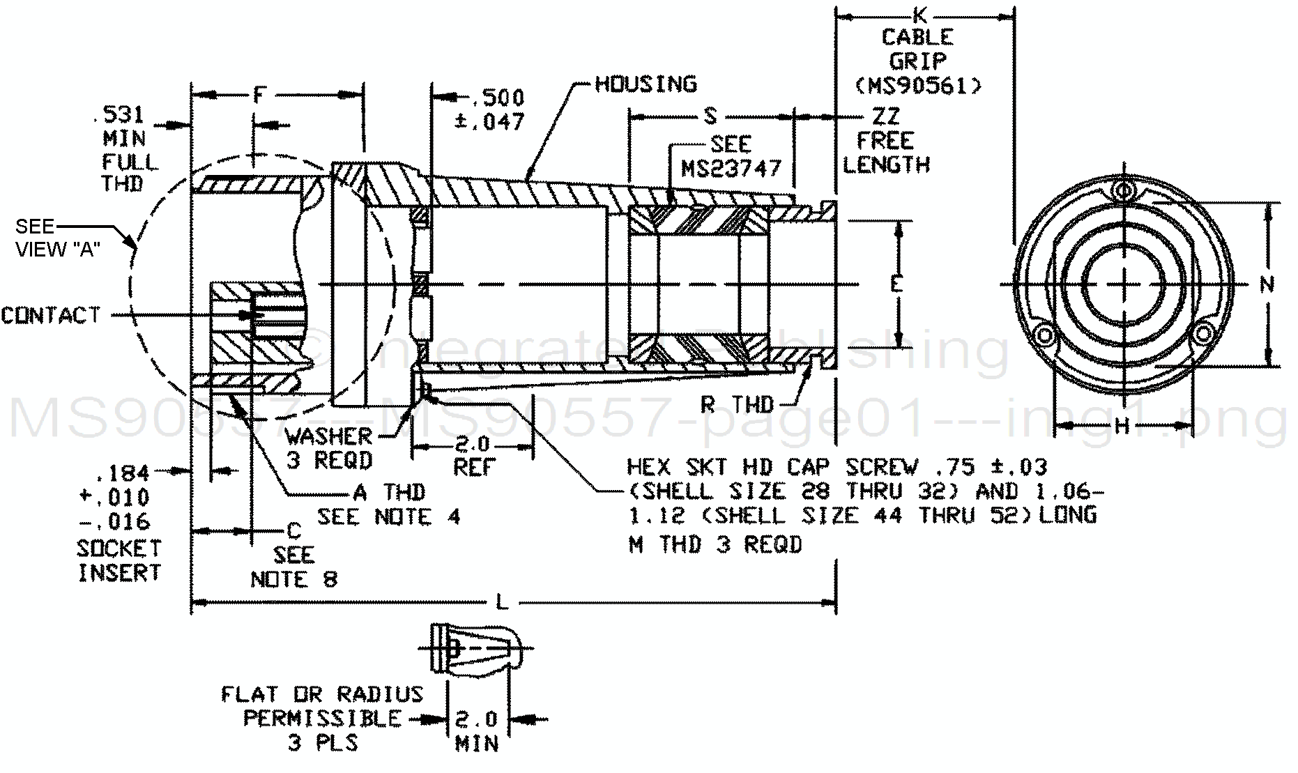 CONNECTOR, RECEPTACLE, ELECTRICAL, CABLE CONNECTING, (WITHOUT COUPLING RING), CLASS L