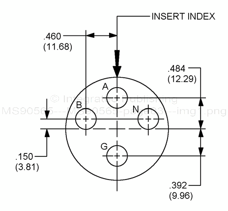 2. Unless otherwise specified, front face of pin insert pattern is shown. Socket inserts are the reverse.