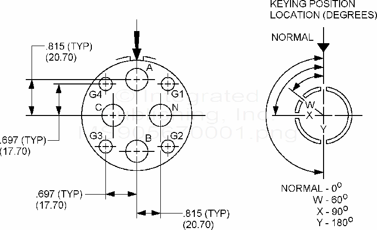 MS90567 Insert Arrangements, Electrical Connector, Size 48 Class L, 150 Amps