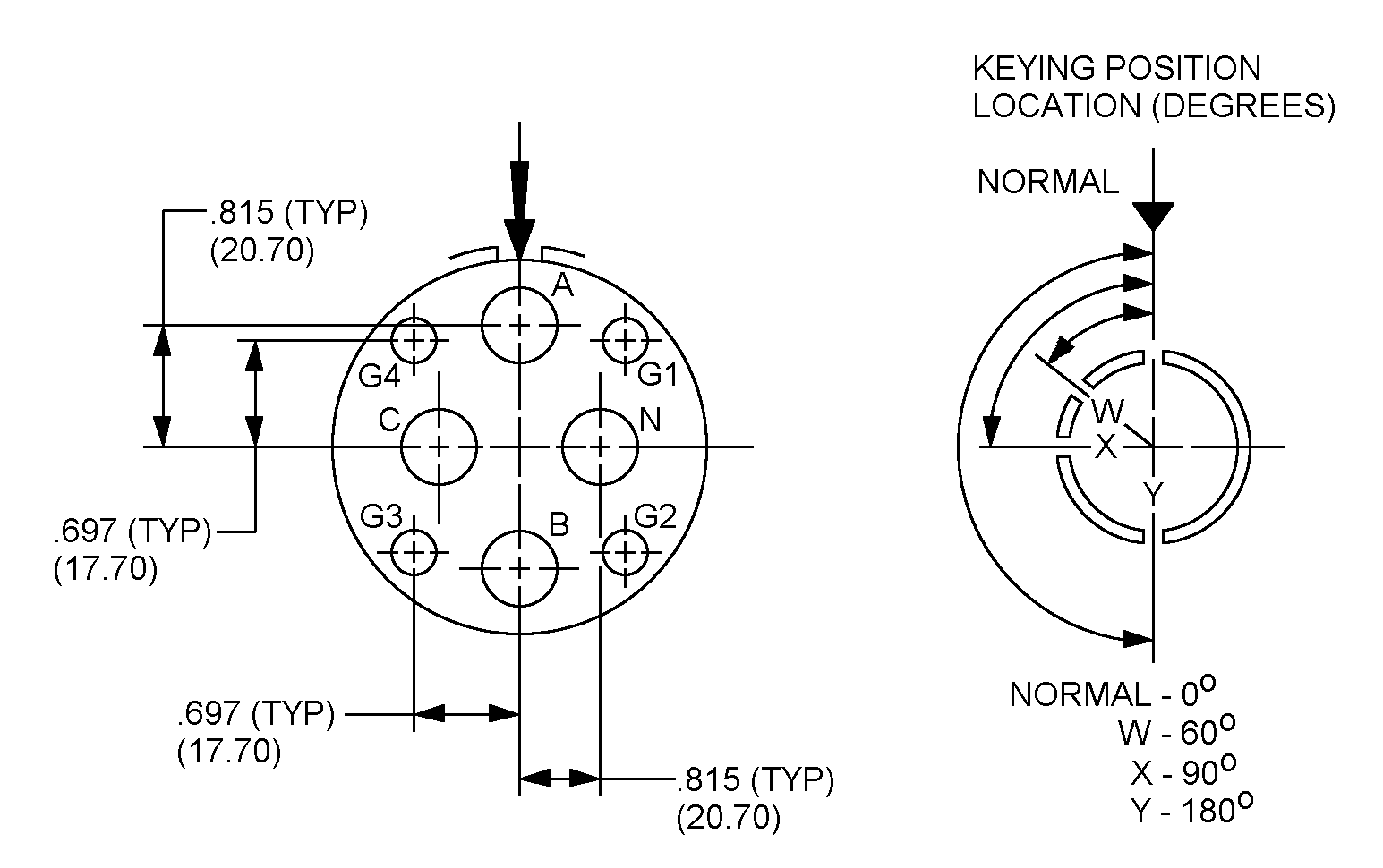 INSERT ARRANGEMENTS, ELECTRICAL CONNECTOR, SIZE 48, CLASS L, 150 AMPS