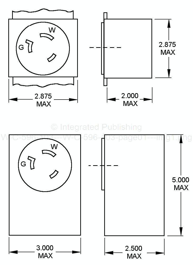 4. For mounting dimensions, see W-C-596 (single receptacle with break-off ears).