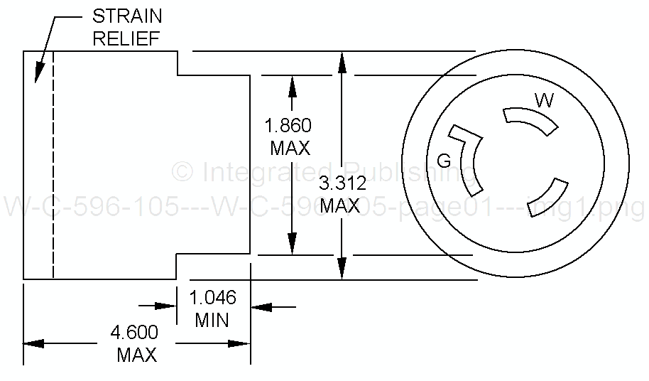 CONNECTOR, PLUG, ELECTRICAL, SPECIAL PURPOSE, CA8LE OUTLET, LOCKING, GROUNDING, 2 POLE, 3 WIRE, 30 AMPERES, 277 VOLTS, 50/60 HERTZ