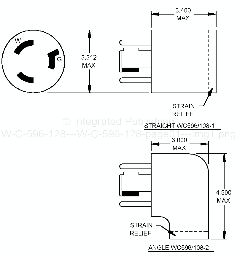 4. For mounting dimensions, see W-C-596 (single receptacle with break-off ears).