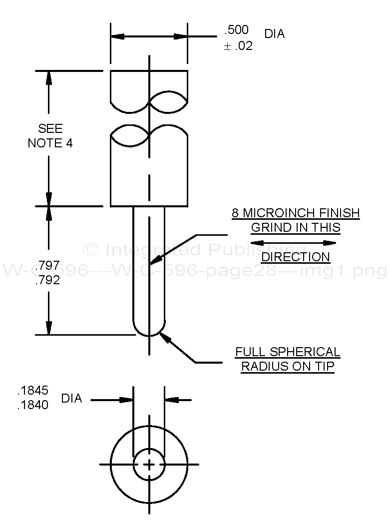 7. For a receptacle with a restricted ground socket throughway, the diameter shall be the minimum design diameter of the restriction +.000, -.002 (0.05 mm).